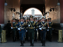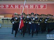 1日7时36分,中国人民解放军仪仗队和军乐团首次执行天安门广场升国旗任务。新仪式在原升降国旗仪式基础上,相应增加阵容,编设部分新动作,创作号角音乐,力求庄重大气,彰显威武雄壮,充分展示新时代强国强军风采。