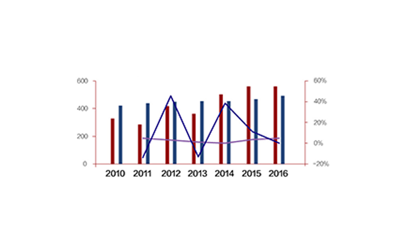 2013-2016年,中国农村贫困人口累计减少5564万人,贫困发生率从10.2%降至4.5%。