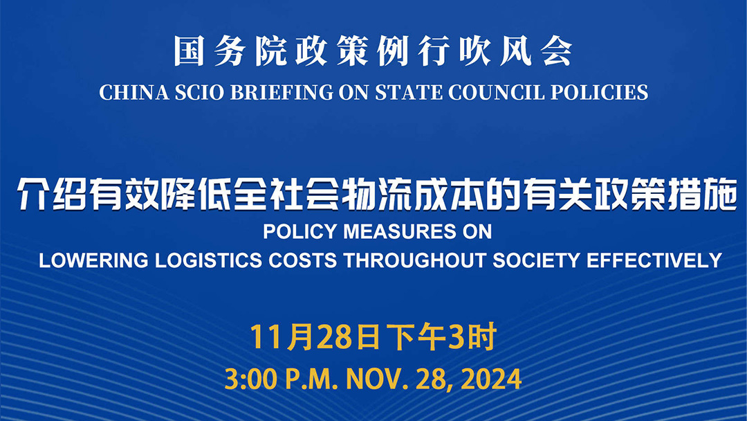 国务院新闻办公室将于2024年11月28日(星期四)下午3时举行国务院政策例行吹风会,请国家发展改革委副秘书长张世昕和交通运输部、商务部、国铁集团有关负责人介绍有效降低全社会物流成本的有关政策措施,并答记者问。