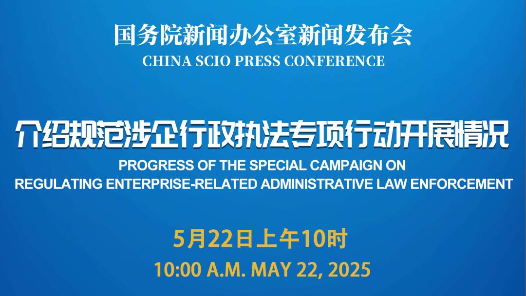 国务院新闻办公室将于2025年5月22日(星期四)上午10时举行新闻发布会,请司法部副部长胡卫列和应急管理部、市场监管总局有关负责人介绍规范涉企行政执法专项行动开展情况,并答记者问。