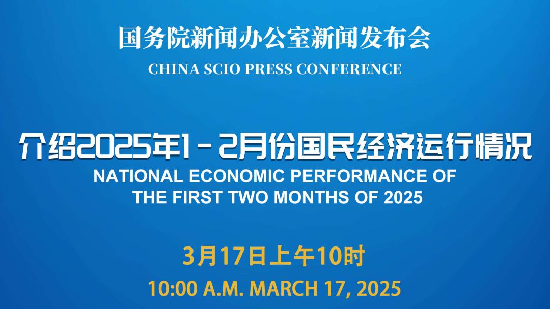 国务院新闻办公室将于2025年3月17日(星期一)上午10时举行新闻发布会,请国家统计局新闻发言人、国民经济综合统计司司长付凌晖介绍2025年1-2月份国民经济运行情况,并答记者问。