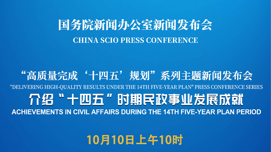 国务院新闻办公室于2025年10月10日(星期五)上午10时举行“高质量完成‘十四五’规划”系列主题新闻发布会,请民政部部长陆治原介绍“十四五”时期民政事业发展成就,并答记者问。