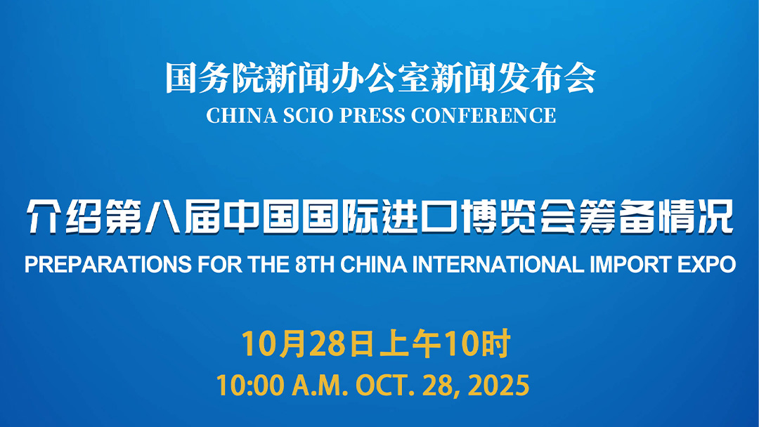 国务院新闻办公室于2025年10月28日(星期二)上午10时举行新闻发布会,请商务部副部长盛秋平,上海市委常委、市委秘书长华源介绍第八届中国国际进口博览会筹备情况,并答记者问。