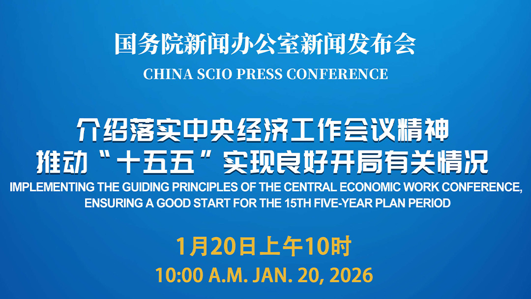 国务院新闻办公室于2026年1月20日(星期二)上午10时举行新闻发布会,请国家发展改革委副主任王昌林介绍落实中央经济工作会议精神,推动“十五五”实现良好开局有关情况,并答记者问。