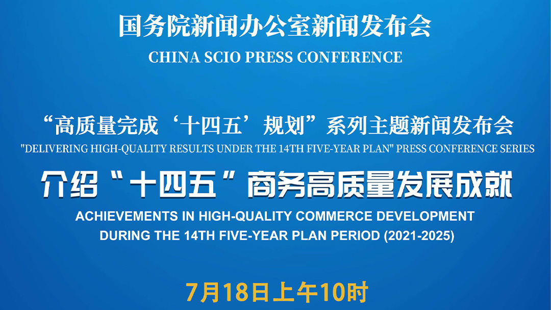 国务院新闻办公室将于2025年7月18日(星期五)上午10时举行“高质量完成‘十四五’规划”系列主题新闻发布会,请商务部部长王文涛介绍“十四五”商务高质量发展成就,并答记者问。